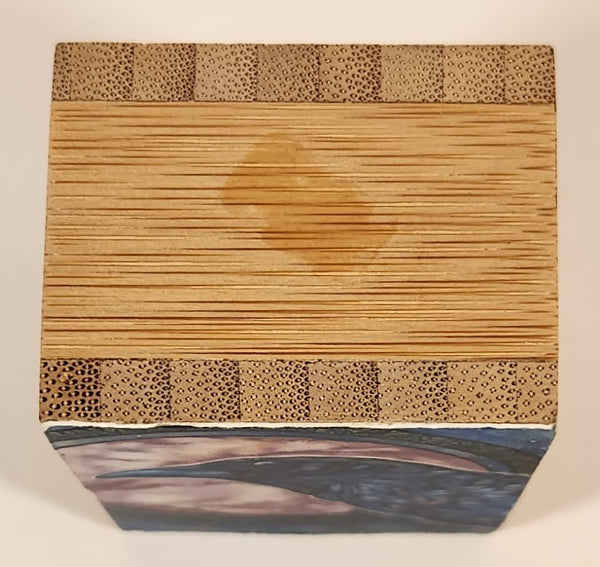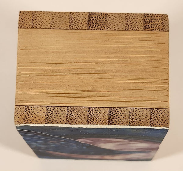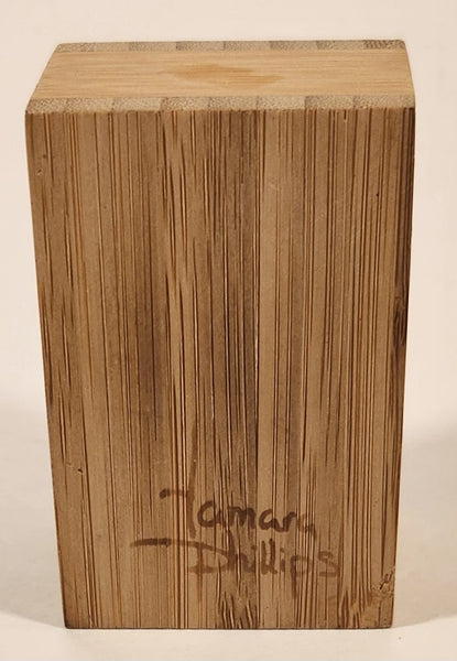 Fire Crow Bird Blue and Pink Art Picture on Wood Block Signed Tamara Phillips