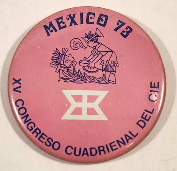 Mexico 73 XV Congreso Cuadrienal Del Cie Pink 2 1/4" Round Button Pin