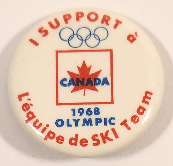 Rare 1968 Team Canada Olympics I Support A L'equipe de SKI Team 1 1/4" Round Button Pin