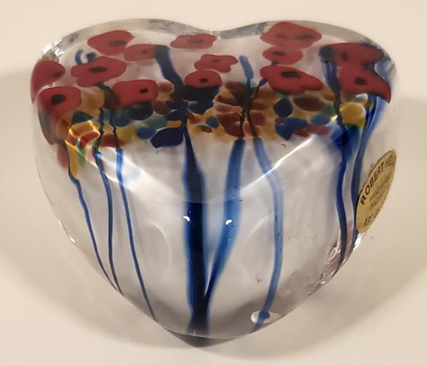 Rare Robert Held Signed Red Poppy Flowers Themed Heart Shaped Art Glass Paperweight