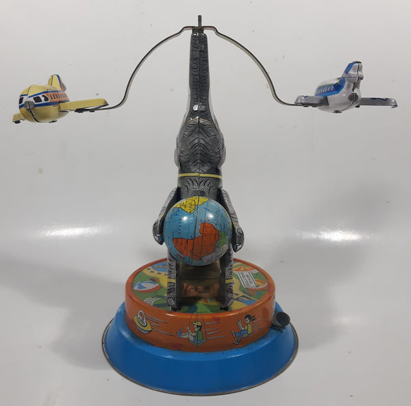 Vintage Elephant Carry Plane 10 1/2" Tall Tin Metal Key Wind Up Toy Made in China