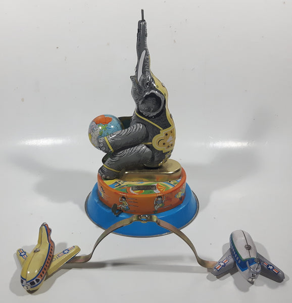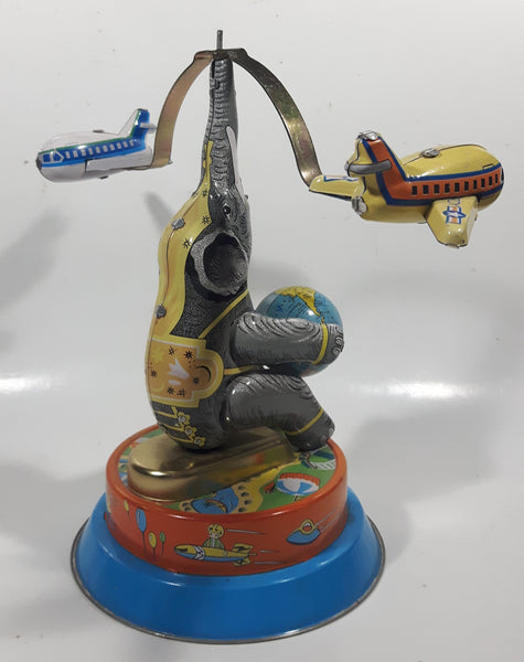 Vintage Elephant Carry Plane 10 1/2" Tall Tin Metal Key Wind Up Toy Made in China