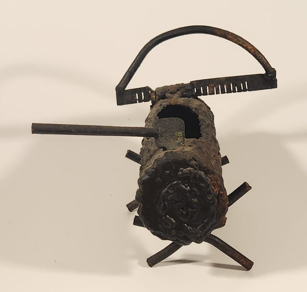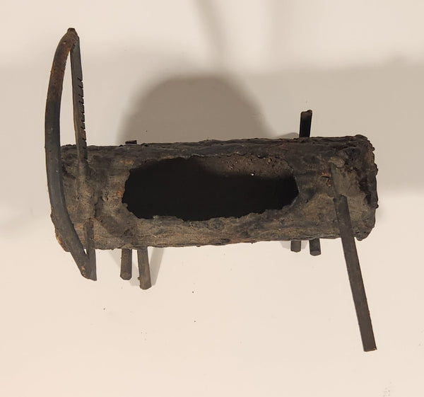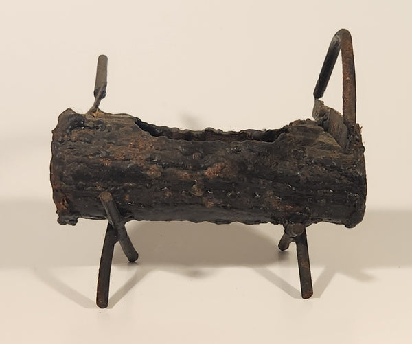 Antique Saw and Axe Hollowed Tree Log Welded Steel Metal Ashtray