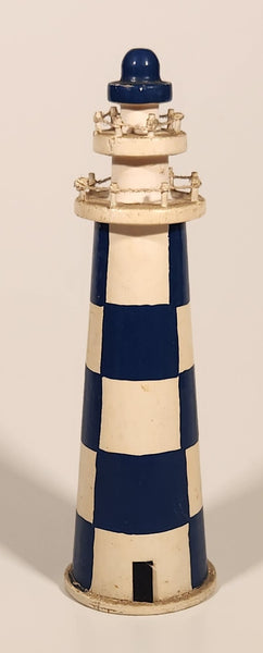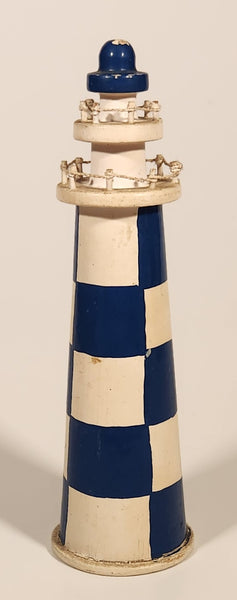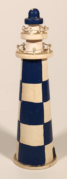 Blue and White Checkered Lighthouse 5 3/4" Wooden Ornament
