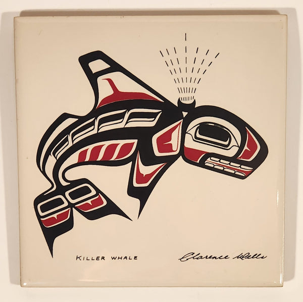 Clarence A Wells "Killer Whale" Aboriginal Art Ceramic Tile Trivet