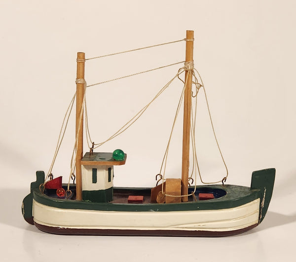 Fishing Trawler Sail Boat Green and White 7" Wooden Boat Model