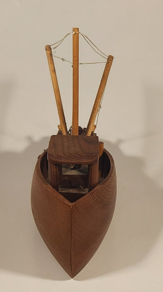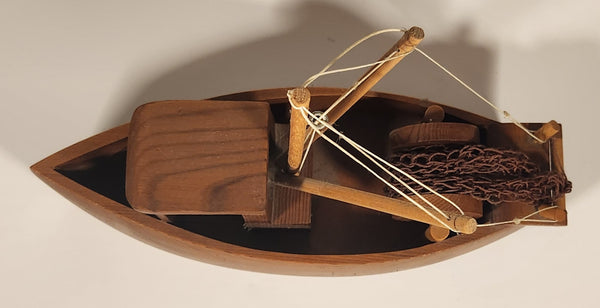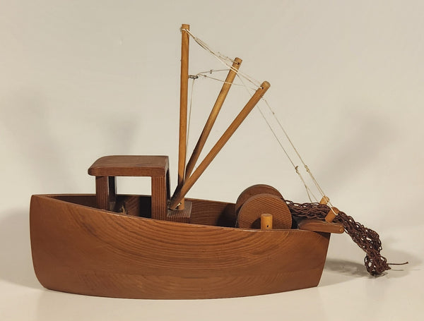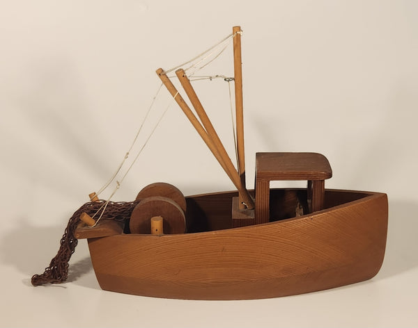 Rare Fishing Trawler with Roll Out Net 10" Teak Wooden Boat Model