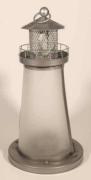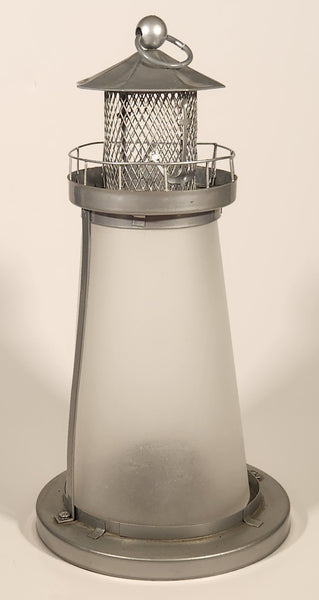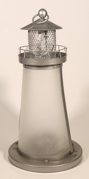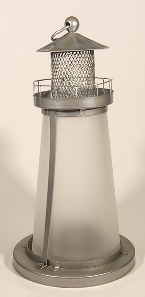 Frosted Glass Lighthouse 9 1/4" Metal Candle Holder Lamp Light