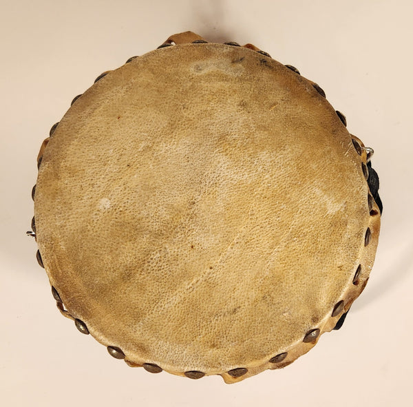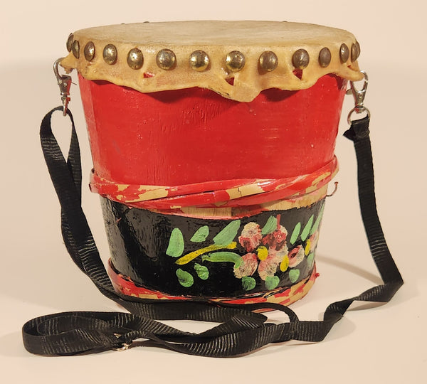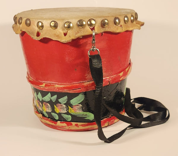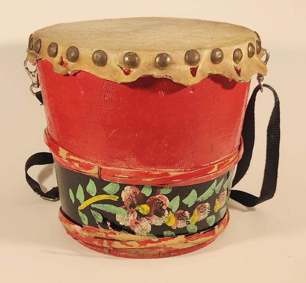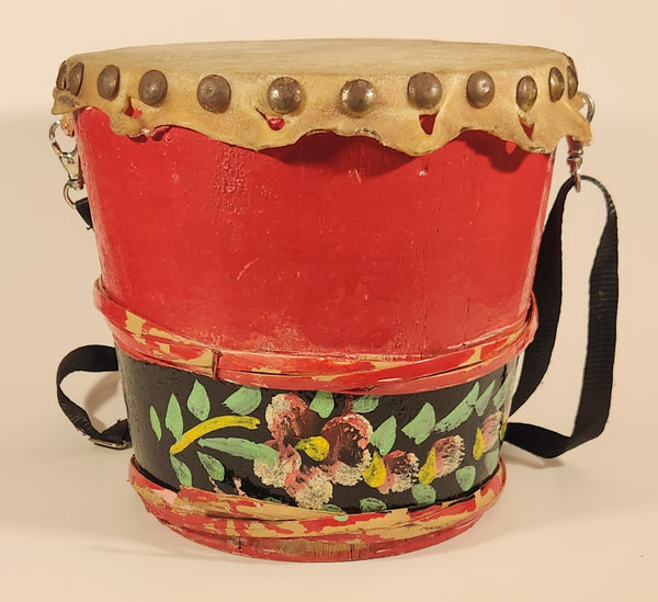 Vintage Chinese Lion Dance Drum Rawhide 8 1/4" Hand Painted Wood Instrument
