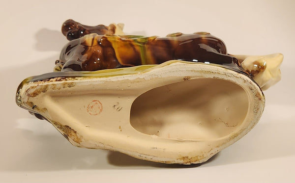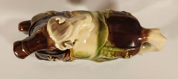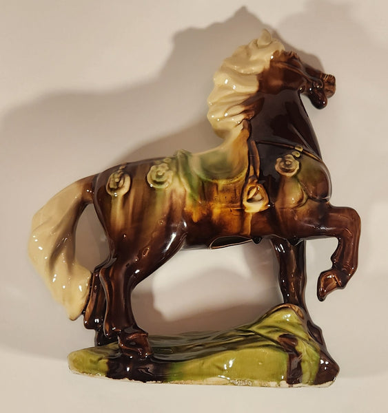 Vintage Chinese Tang Dynasty Brown War Horse with White Mane with Saddle and Medallions Glazed 12 3/4" Ceramic Figurine