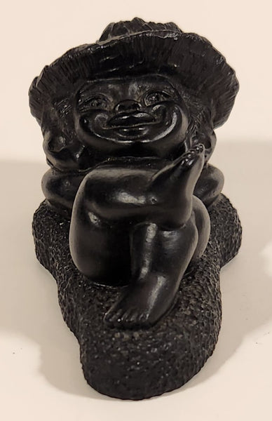 Vintage Coco Joe's Hawaii #222 Menehune Pi-Nui or The Sleepy One Laying 5 1/4" Long Carved Lava Rock Figurine