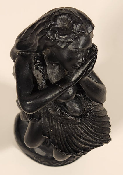 Vintage Coco Joe's Hawaii Hula Girl Dreams 5 3/4" Tall Carved Lava Rock Figurine Sculpture Chip on Lei