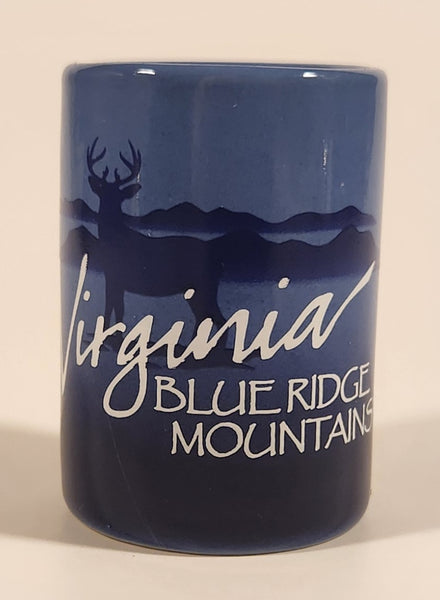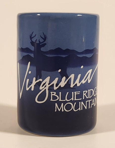 Virginia Blue Ridge Mountains Buck Deer Two Tone Blue 2 1/2" Ceramic Shot Glass